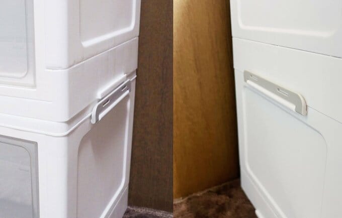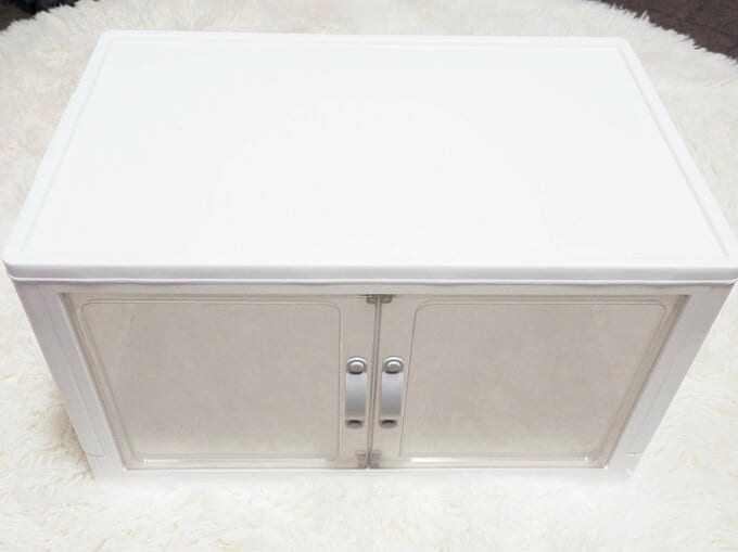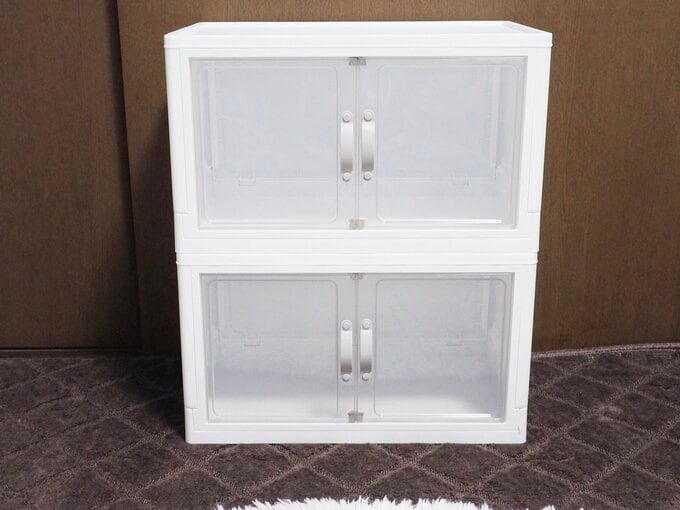 ダイソー700円「扉付き折りたたみ収納ケース」を買って正解。バズった理由に納得、2個使いレポート 記事に戻る スクロールで次の画像 (画像 1/12) この記事を読む 「ジョイントできる扉付折りたたみ収納ケース」(770円)サイズ:41.8cm×26.5cm×24.5cm 材質:本体・扉 ポリプロピレン、取っ手 ポリエチレン、ドアフレーム ポリスチレン 耐荷重:3kg (画像 2/12) この記事を読む (画像 3/12) この記事を読む 折りたたんだ厚さは約5cm (画像 4/12) この記事を読む (画像 5/12) この記事を読む (画像 6/12) この記事を読む (画像 7/12) この記事を読む (画像 8/12) この記事を読む (画像 9/12) この記事を読む 左:フタを外さない間違ったつけ方 右:フタを外した正しいつけ方 (画像 10/12) この記事を読む (画像 11/12) この記事を読む (画像 12/12) この記事を読む