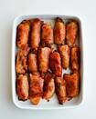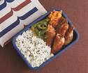 はみ出さんばかりにキノコを巻いて栄養まんてん、ボリューミーなお弁当が完成!